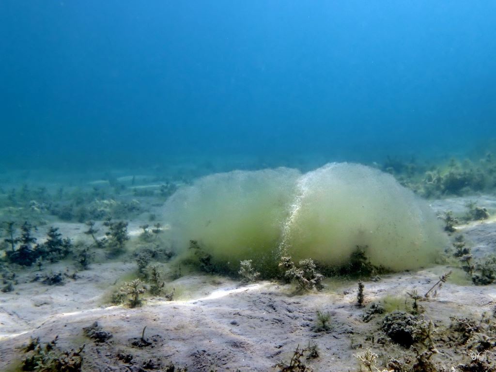Big blobs of algae rolling along the Lake bottom in the currents. Photo by:
