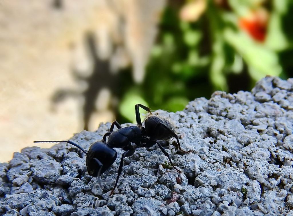 Same sort as in previous photo - a large forest ant prowling about the flowerpot. This time in color, so the sky can reflect upon the armor :) Photo by: