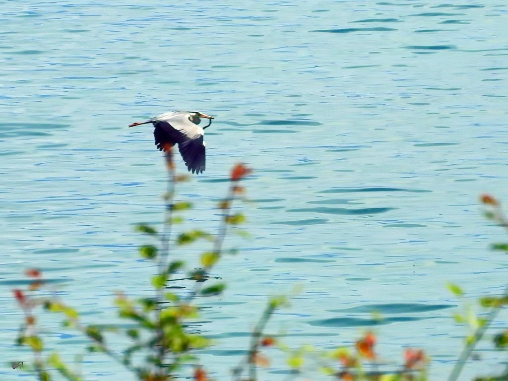When I spotted the heron, he was already too close for anything but one snapped-off photo. And right in that moment the willow branches streaked through the frame!