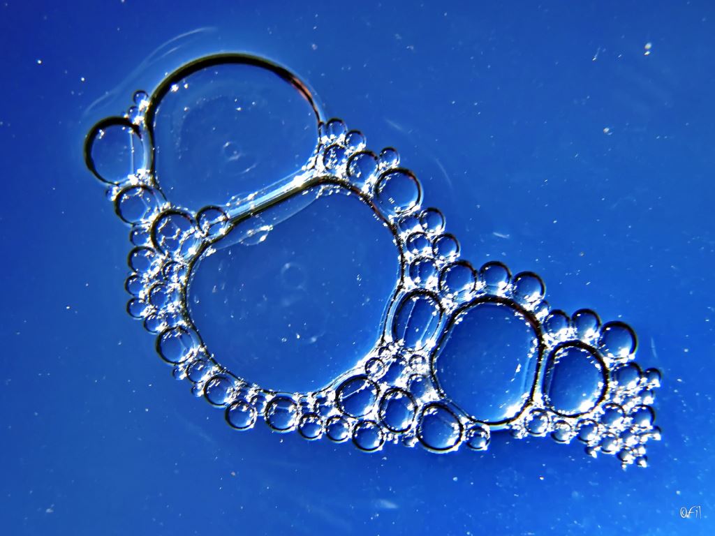 Bubbles photographed from the underside, the group showing funny form. Photo by: