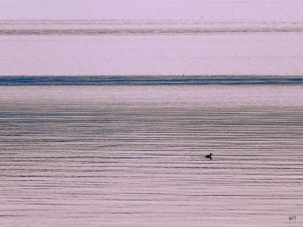 Waves creating lanes over the width of the lake, and the cormorant, looking as if hes enjoying the scene... Photo by: