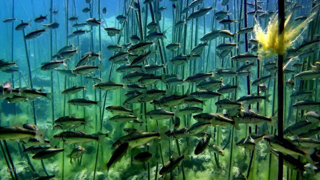 Usually they would separate to let me pass, but it is more fun if I stop swimming. Then the whole swarm starts swimming around me and I can concentrate on photography. Photo by: