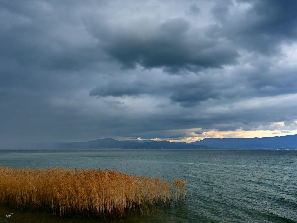 ... stage right, slowly showering the Ohrid coast. On the Lake, even rain is beautiful (as opposed to the cities). Photo by: