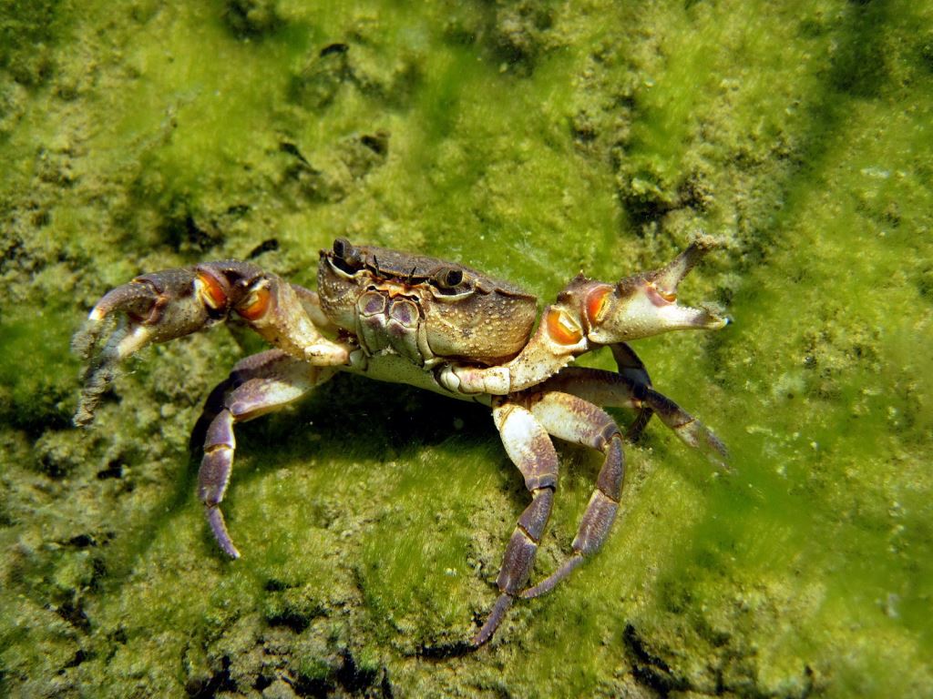 This little fella has to feel crabby every day of his life. And yet, he remains inquisitive and if he detects no danger, will often come close to investigate... Photo by:
