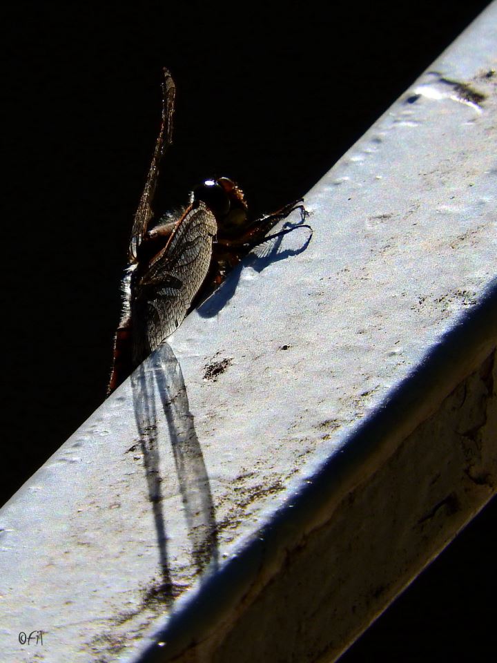 Dragonfly resting for a while on the staircase railing. Photo by: