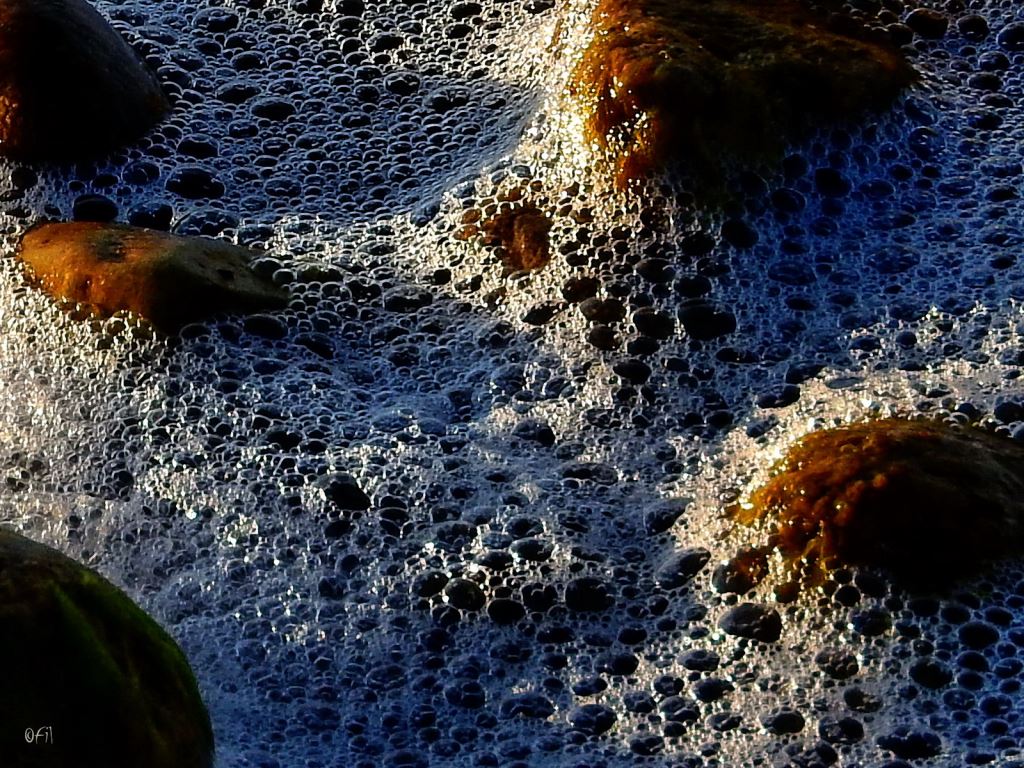 Its winter and the fallen reedstalks, leaves and underwater plants slowly decay, converting to food. The process generates gas bubbles on the surface. These can be a thing of beauty, like this foam in the low light. Photo by: