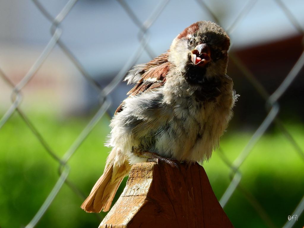 The sparrow feels the summer sun heat, same as I do. And I dont have to fly for a living... :) Photo by: