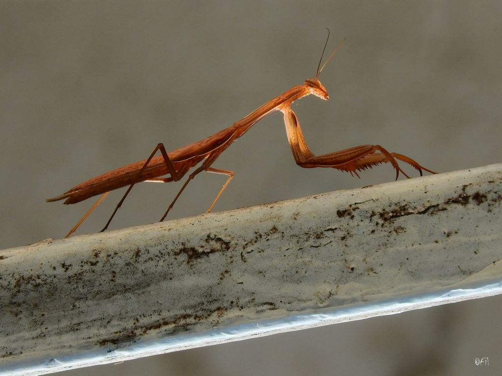 Praying mantis creeps along the handrail looking for insects to eat. The image title is from Frank Herberts "Dune", describing a device not less deadly and dangerous... Photo by: