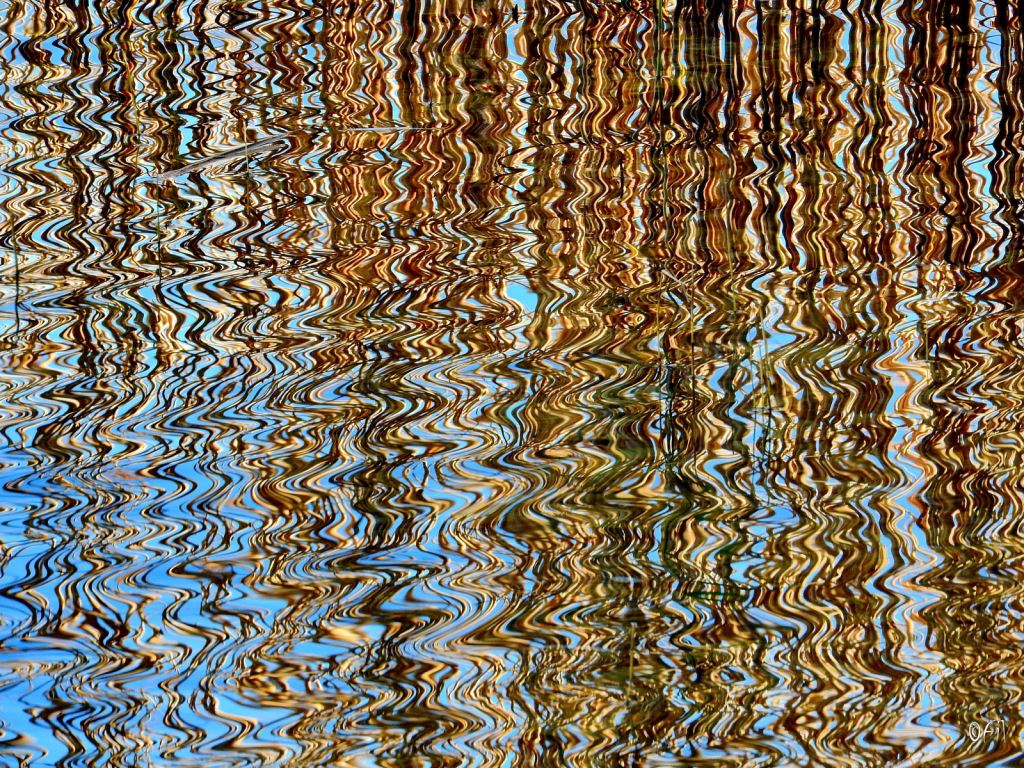Beauty of reed reflection in lake water, moving with the wavelets. Photo by: