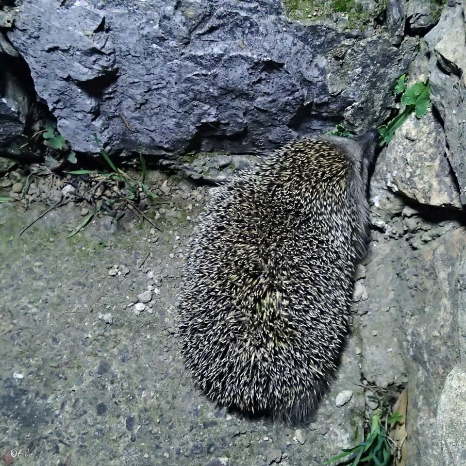 The hedgehog weve found climbing the stairs to the garden in the night! Under the light, he put his nose in the corner and appeared as if he was trying to hide. We took several photos and left him to go about his business. Its nice to know hes around, though, an useful and nice animal like that! :) Photo by: