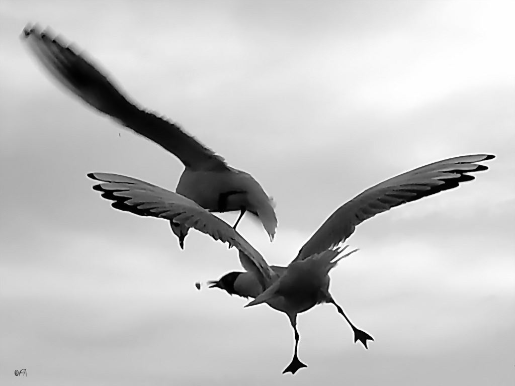 It is still undecidedd which gull will get this bread morsel, as they fly their best to be first! In the end, one will fly away (thats the one with the prize), and the other will circle again, waiting for us to throw another piece in the air. Photo by: