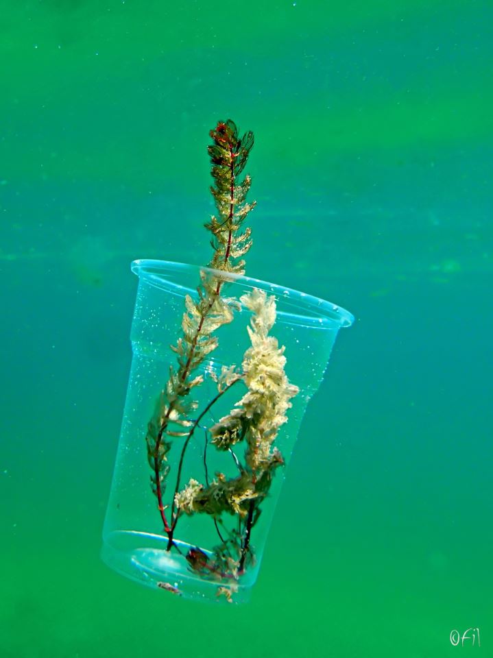 Found a thrown-away plastic cup, and used it for a couple of impulsively composed photos... Later, of course, the cup was disposed of in proper fashion. Photo by: