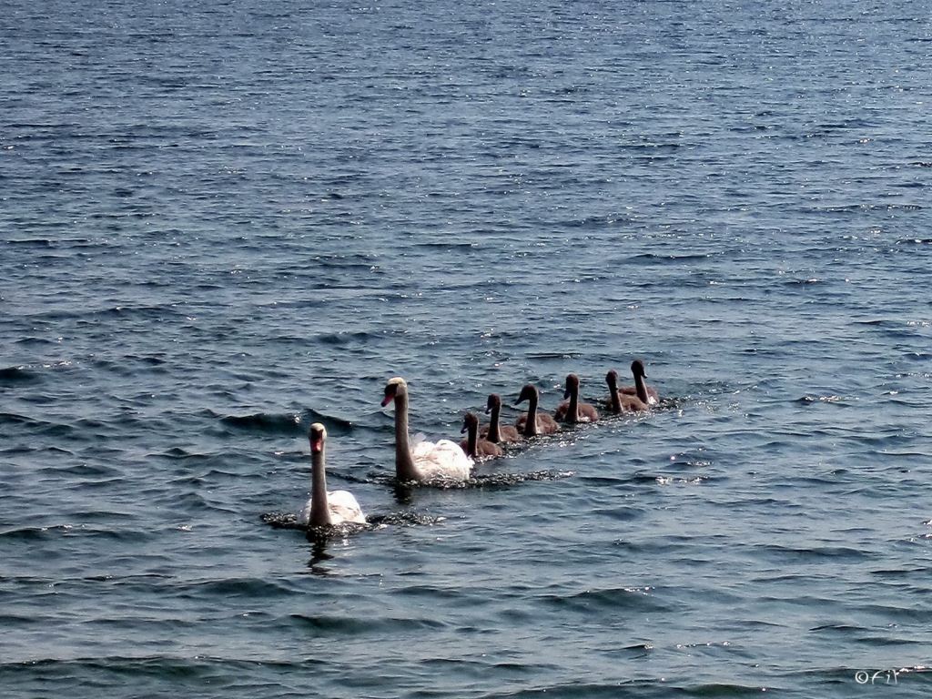 The regulars at our beach in summer months, this family of swans seeking breakfast, showed an interesting discipline, coming and going. Photo by: