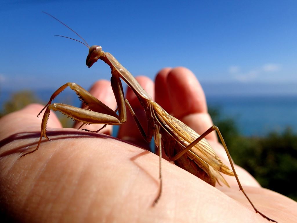 This is the part of the season when they come out of hiding, and become ubiquitous. Some are green, other have this color of coffee-and-milk, but are very inquisitive and not afraid at all to climb all over my hand. Photo by: