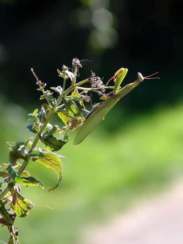 Praying mantis in his hunting pose, sitting utterly unmoving, and waiting for an unsuspecting insect to come within reach. Among all the potential prey, even his own kind wont be safe. Photo by: