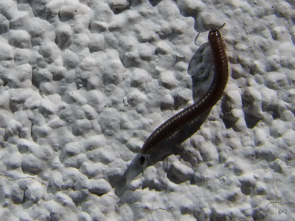 Caterpillar climbing the house wall and casting an interesting shadow. The Sunlight angle and body position created this most unusual shadow that shows on both sides of the body, and entirely naturally. Photo by: