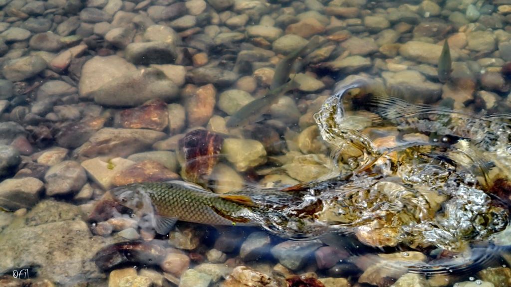 Its spawning season again for the lake chub (Leuciscus cephalus), and many fish can be photographed along the Ohridan shores in two inches of water, or even less. The females bodily hit the shallow water rocks to expedite the release of eggs, and droves of males follow, fertilizing those. Photo by: