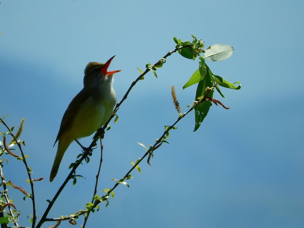 "Our" reed warbler singing from the top of the willow tree.