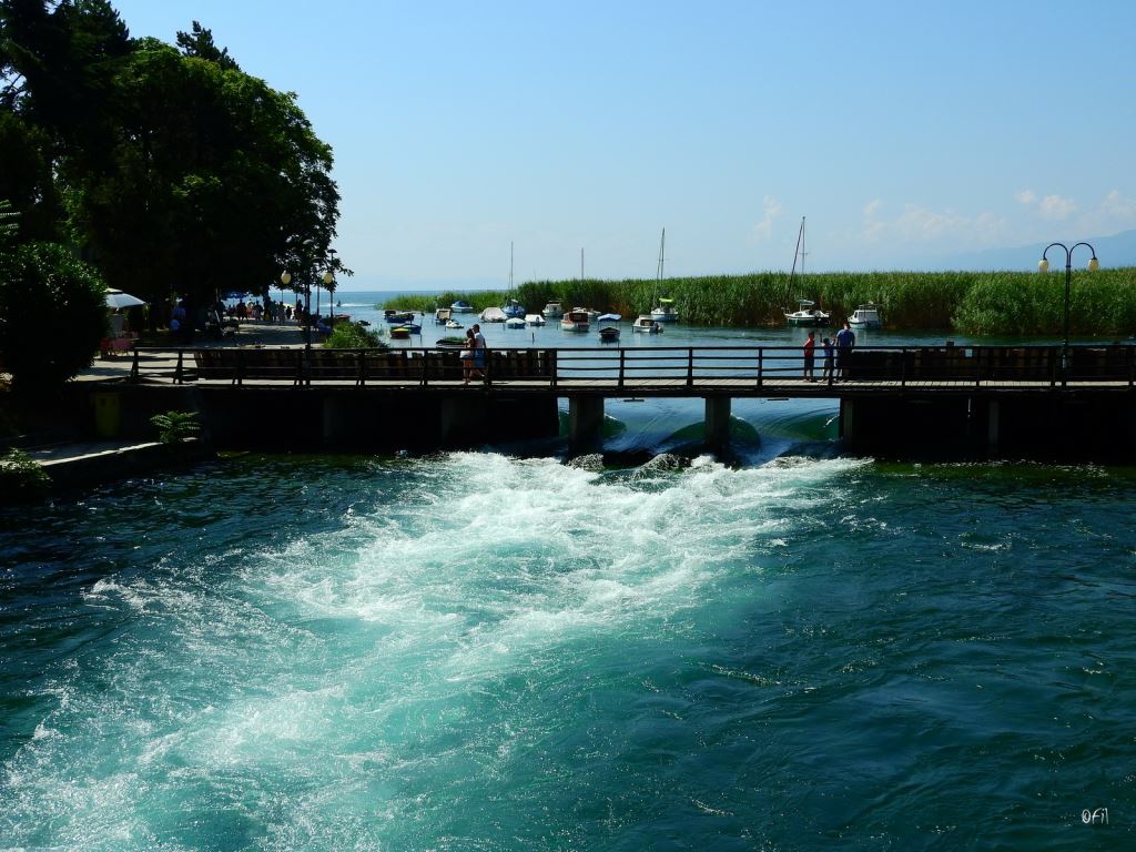 Lake Ohrid water flows out to become River Drim right under this bridge in Struga - thus, you can stand over the lake and river in the same spot. Photo by: