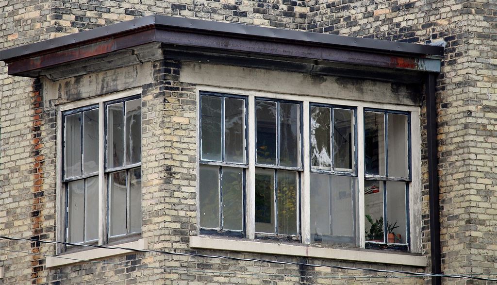 Window of a tan brick, turn-of-the-century apartment building. Photo by:
