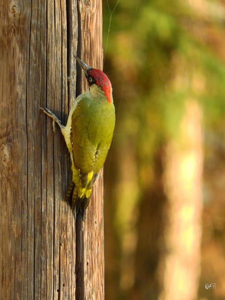 (Picus viridis) trying to reach something edible deep within the dry wood. Pretty bird! Photo by: